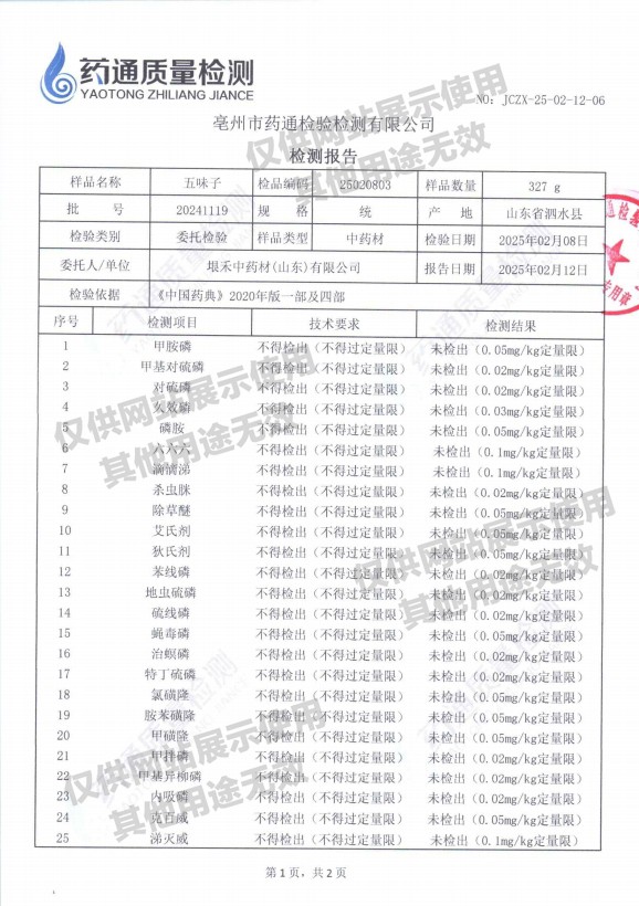 五味子检测报告